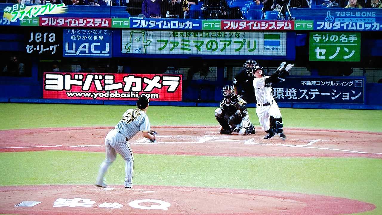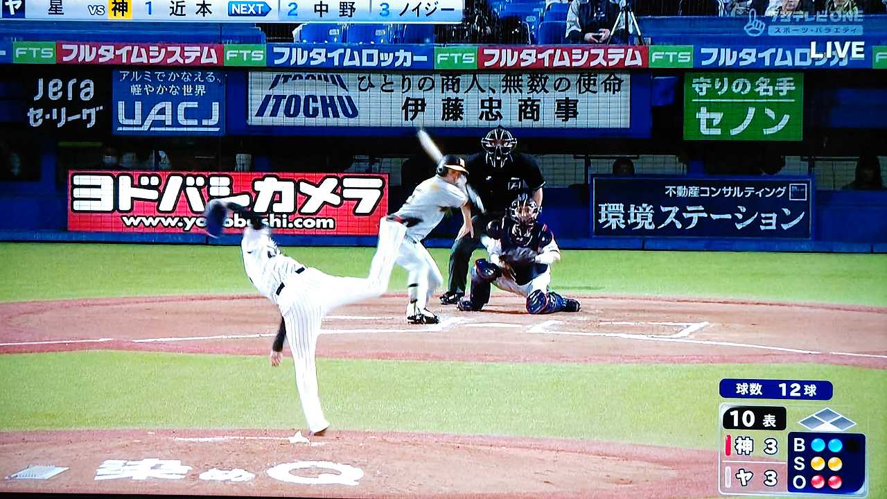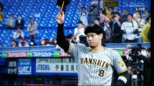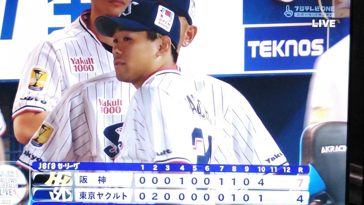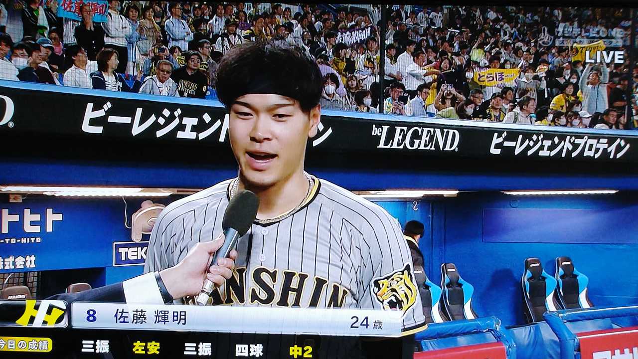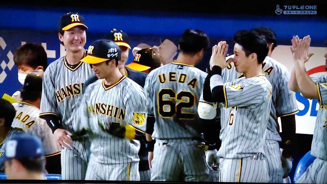 その後に同点とされるも延長10回、2死から打線がつながった。近本の安打、中野の四球、ノイジーの安打で満塁とし、大山の押し出し四球で勝ち越しに成功。なおも続く2死満塁で佐藤輝が走者一掃の適時2塁打を放った。