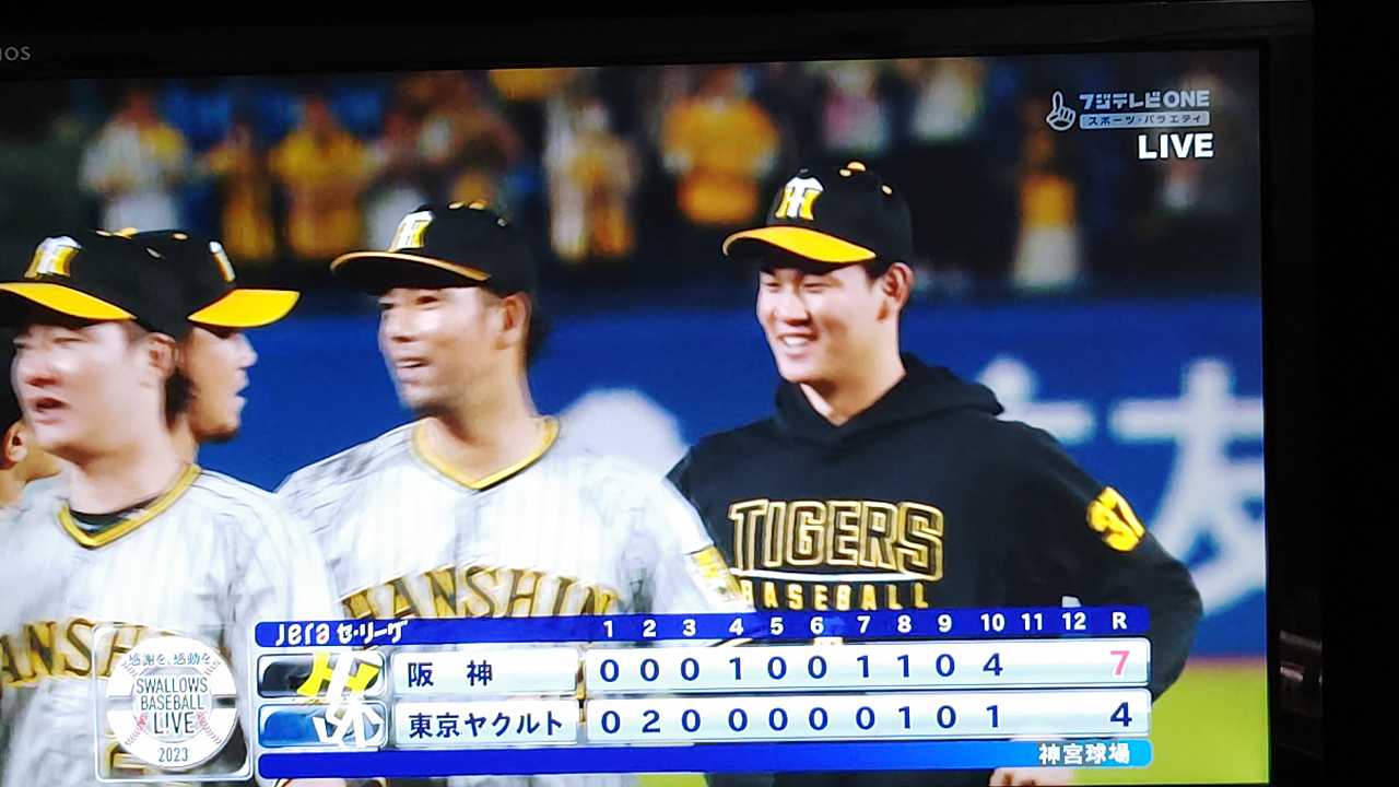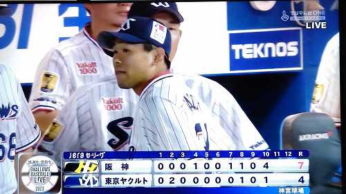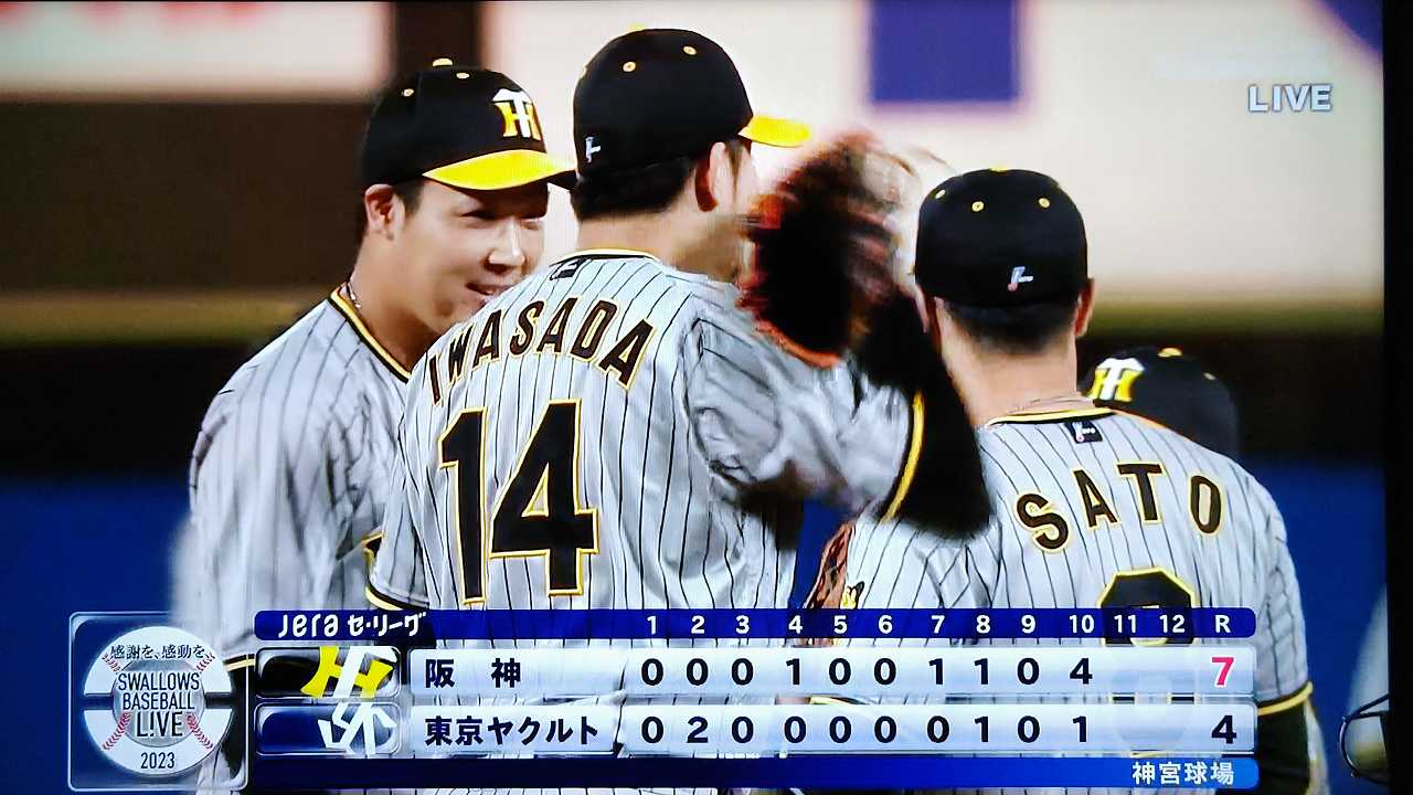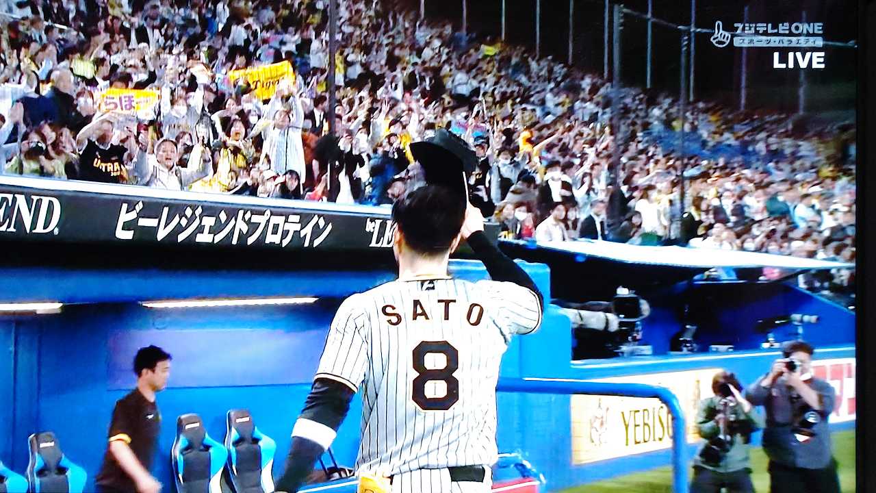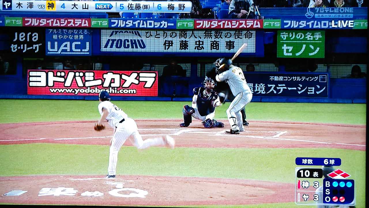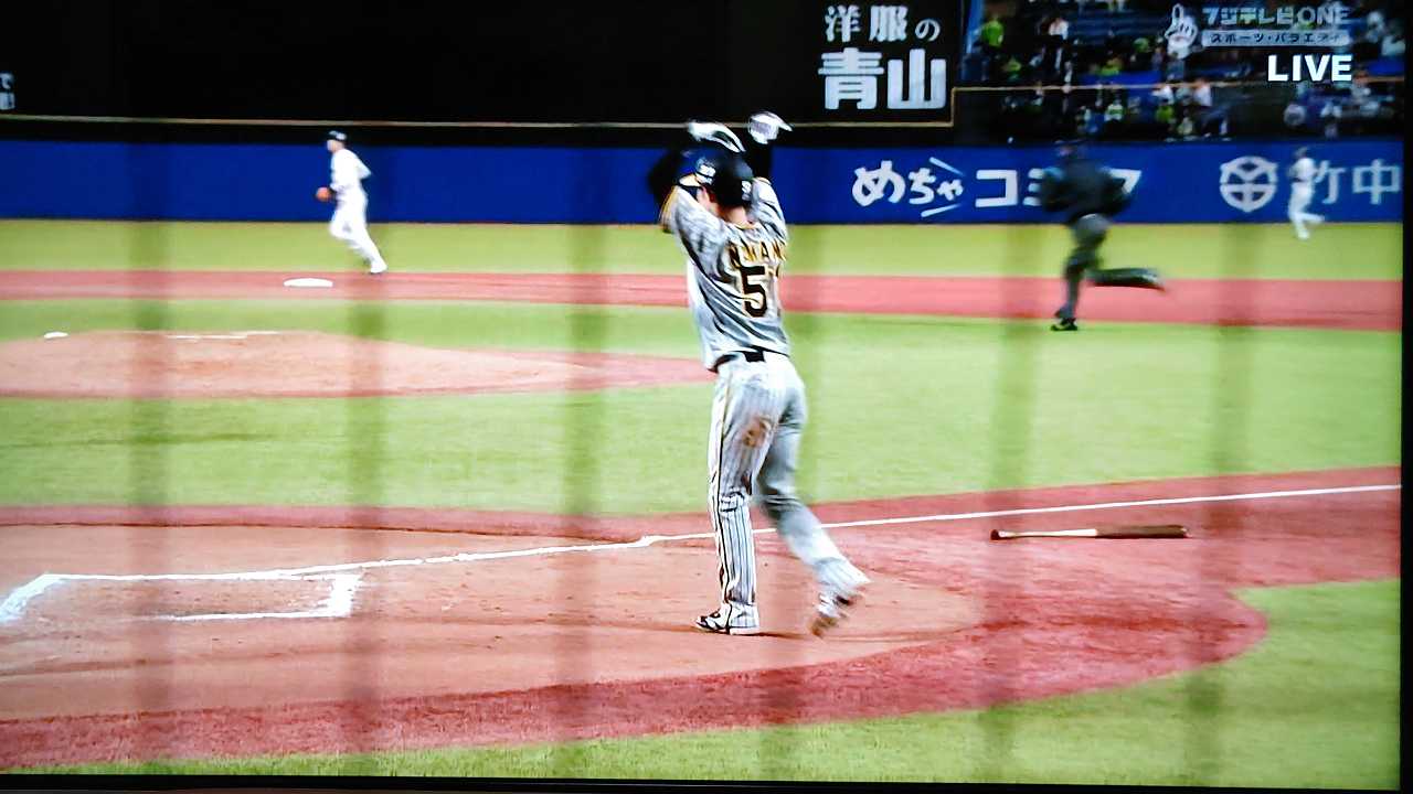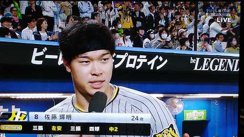 その後に同点とされるも延長10回、2死から打線がつながった。近本の安打、中野の四球、ノイジーの安打で満塁とし、大山の押し出し四球で勝ち越しに成功。なおも続く2死満塁で佐藤輝が走者一掃の適時2塁打を放った。