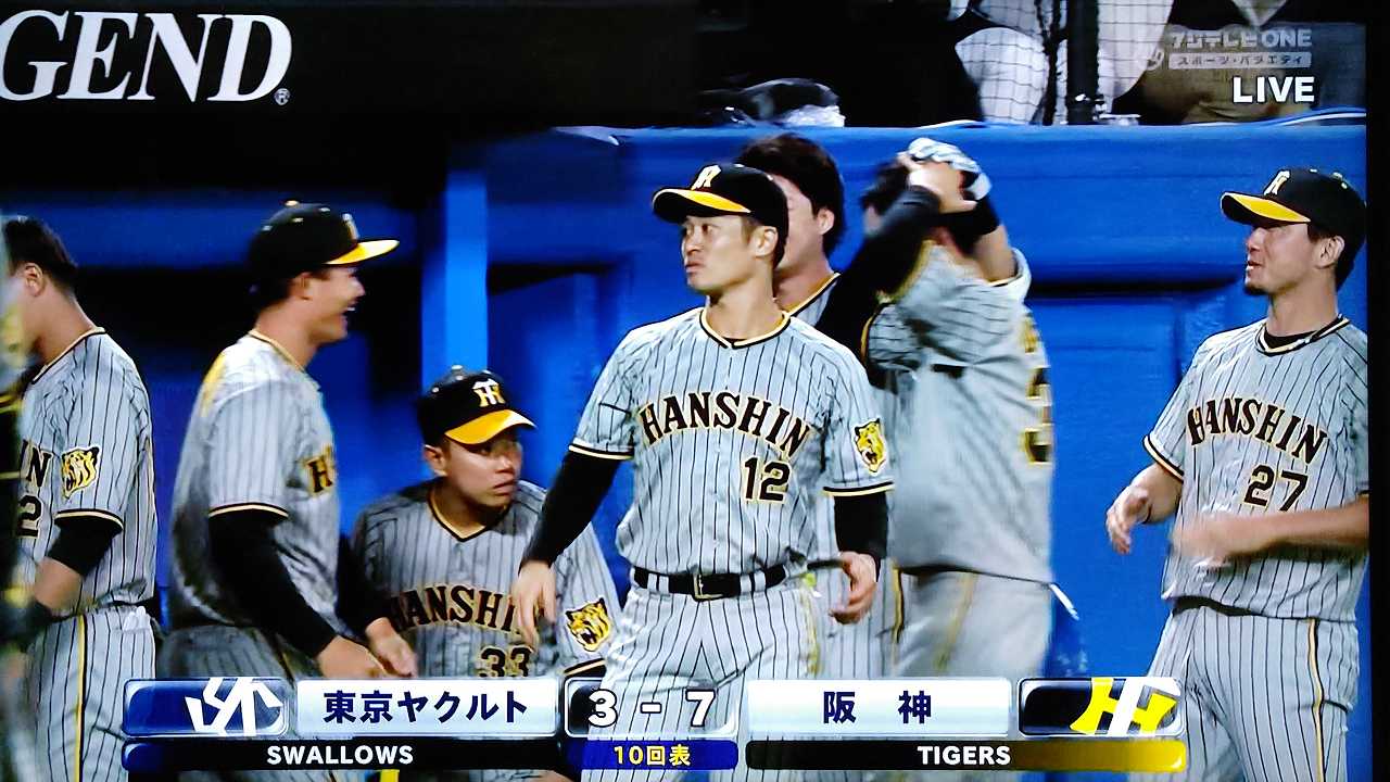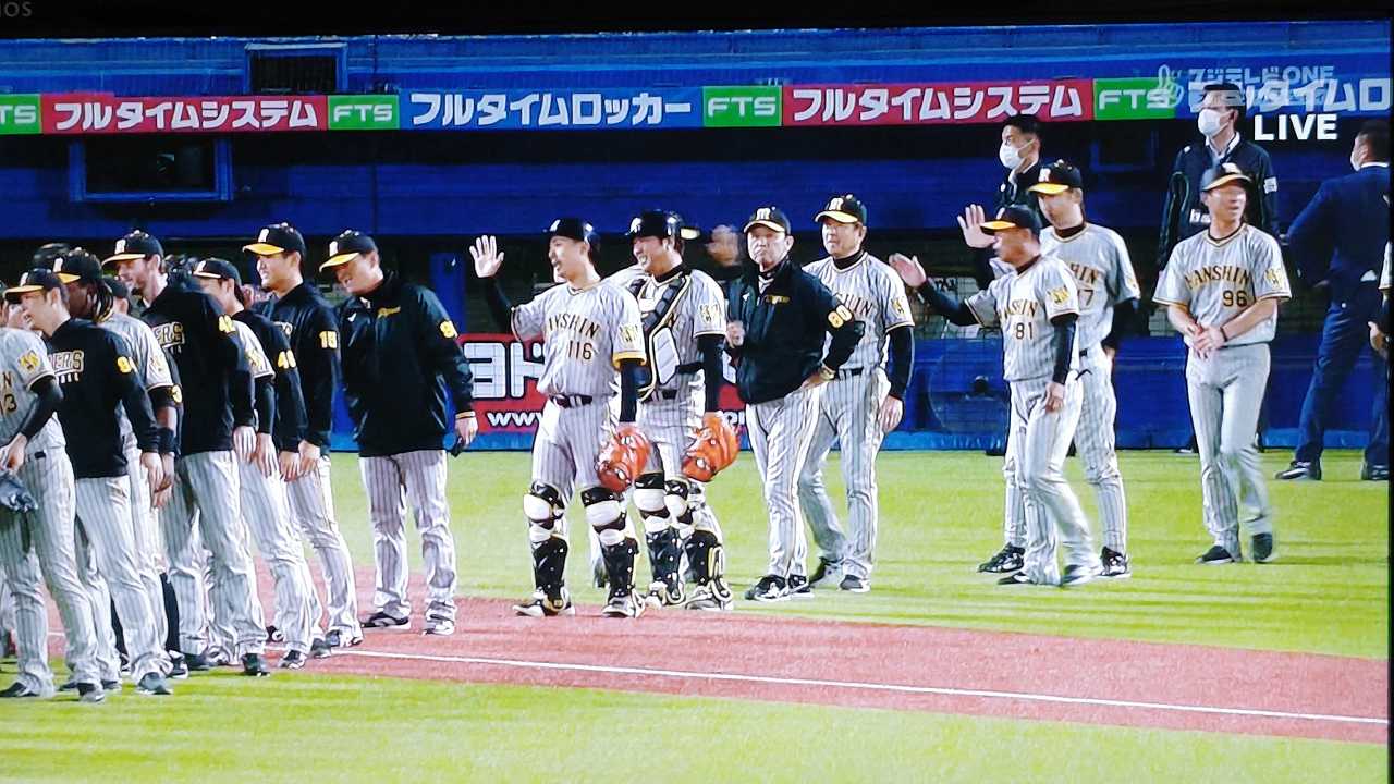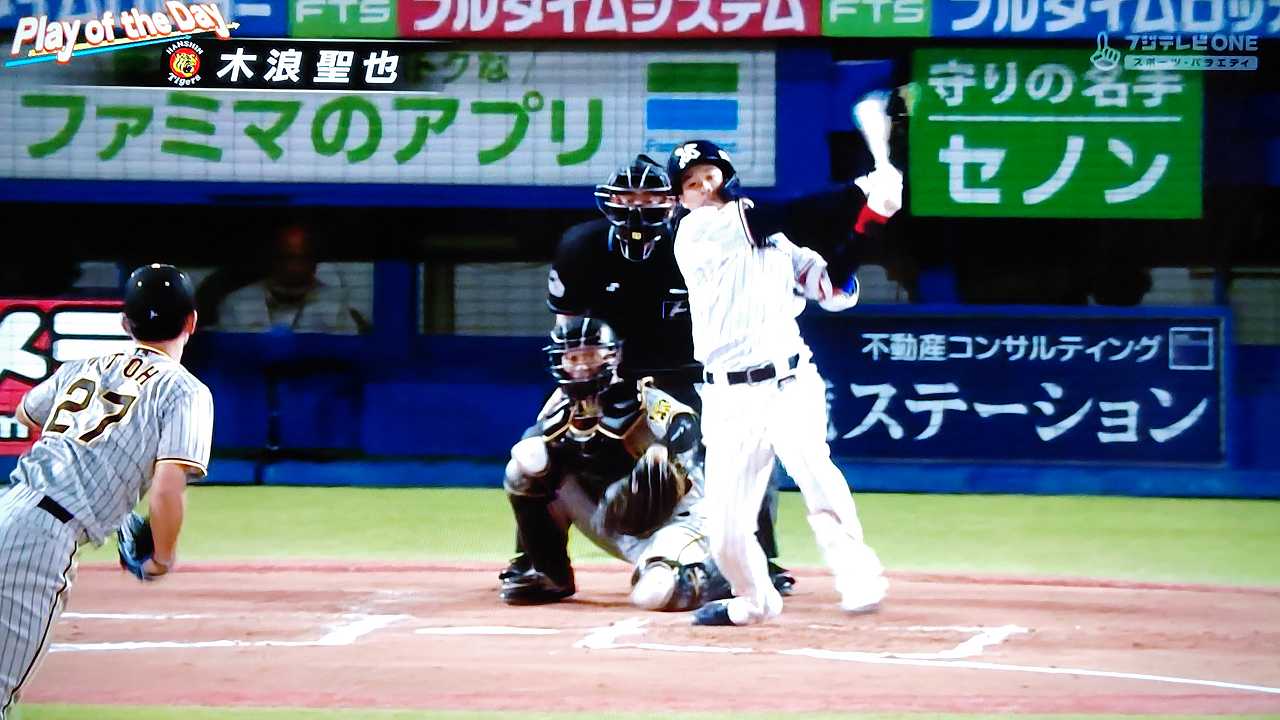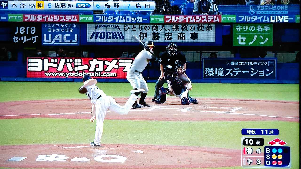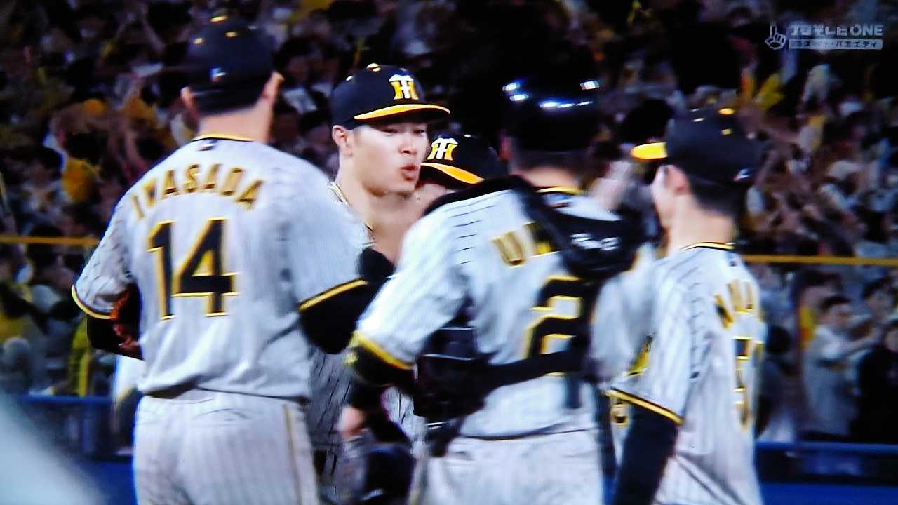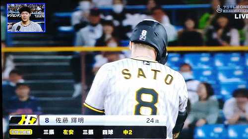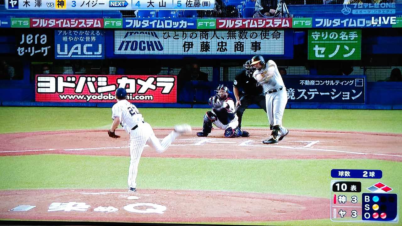 その後に同点とされるも延長10回、2死から打線がつながった。近本の安打、中野の四球、ノイジーの安打で満塁とし、大山の押し出し四球で勝ち越しに成功。なおも続く2死満塁で佐藤輝が走者一掃の適時2塁打を放った。