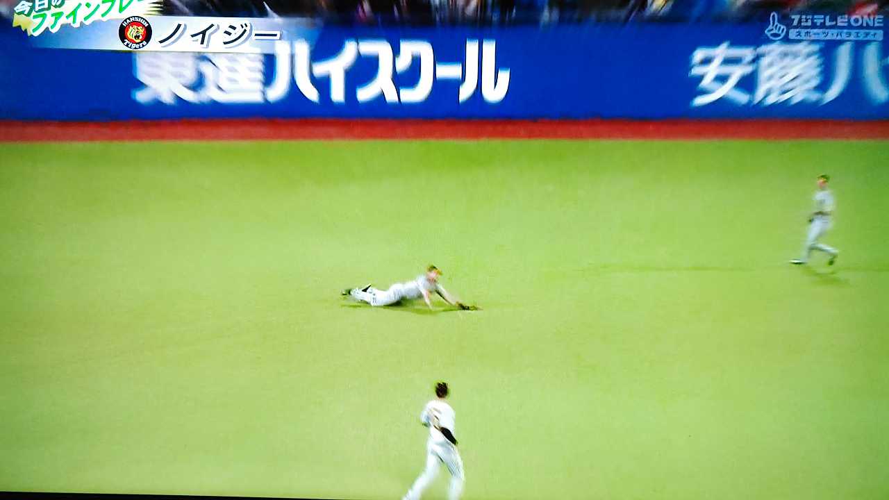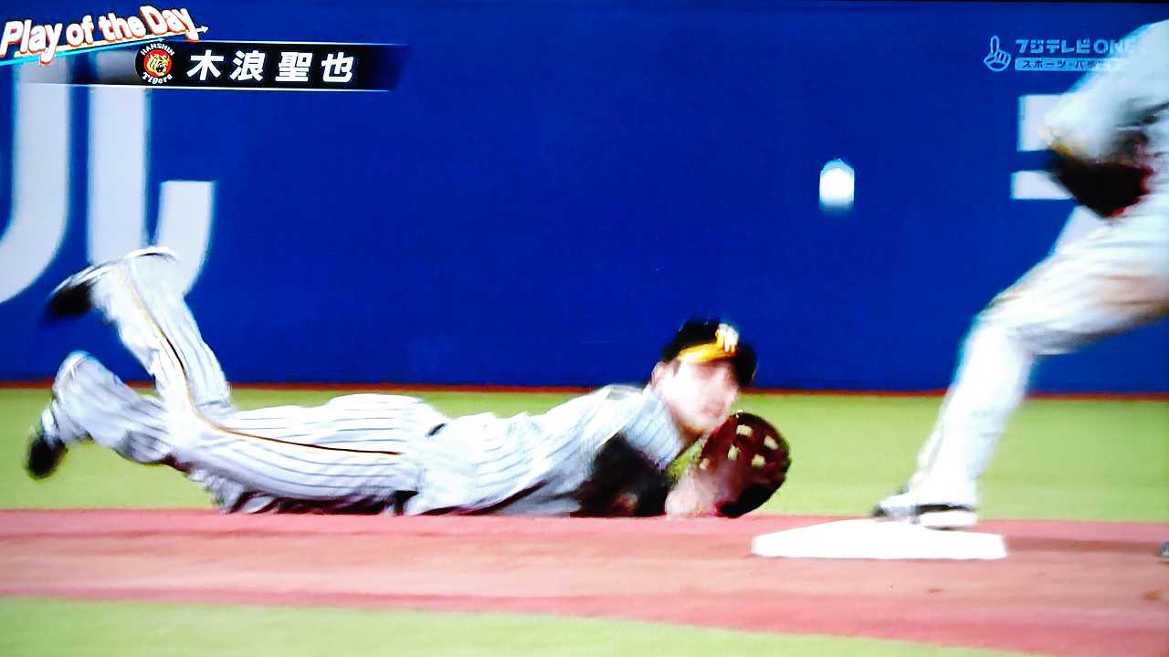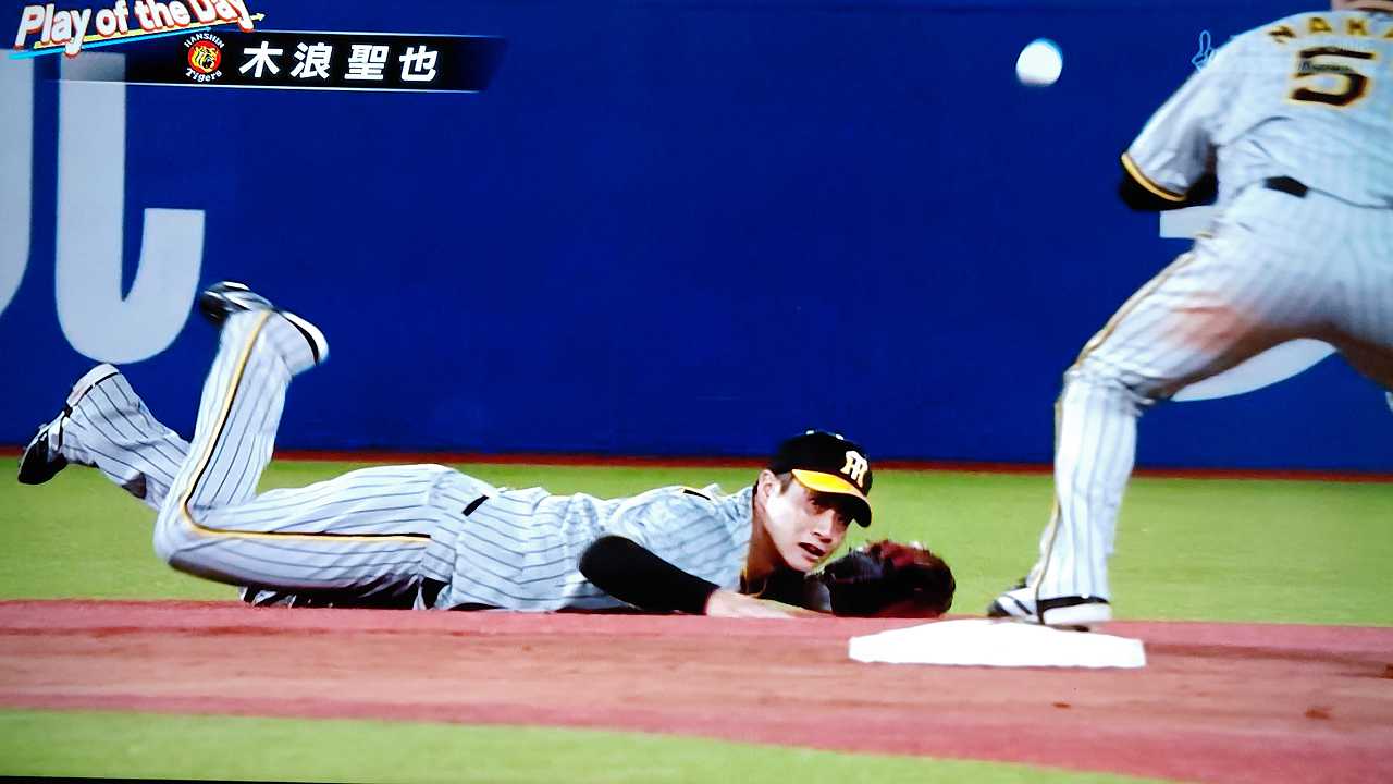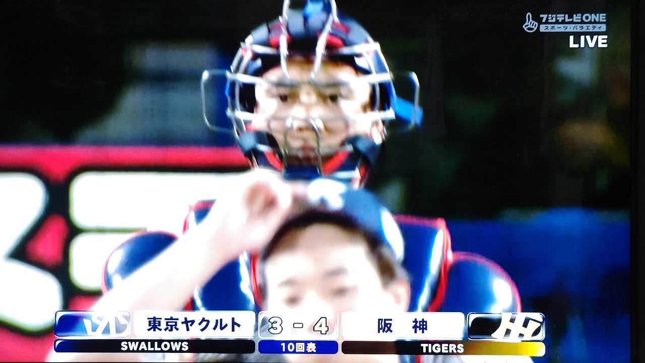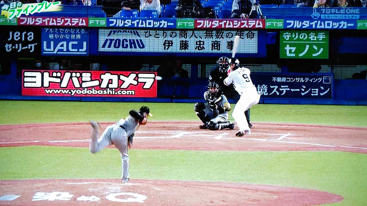 村上さまに特大のホームランは打たれましたが、まったく勢いは繋がらず、塩見の三塁線の抜いたかのあたりを、サトテルが、超ファイルプレー!!