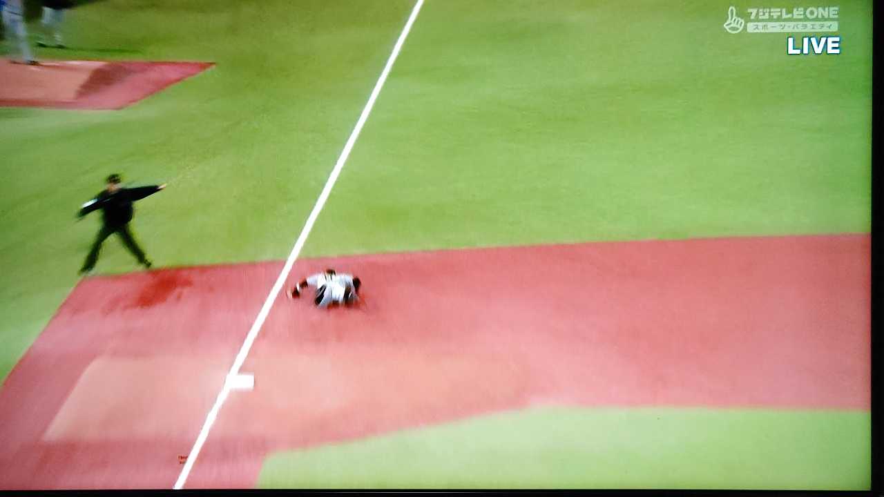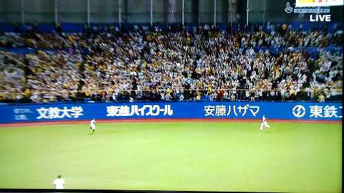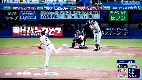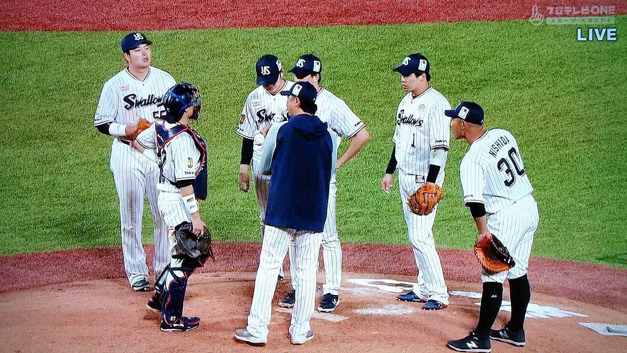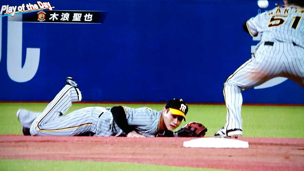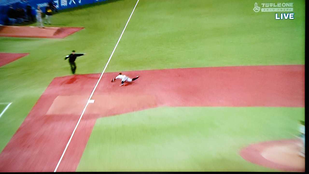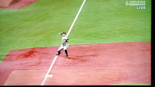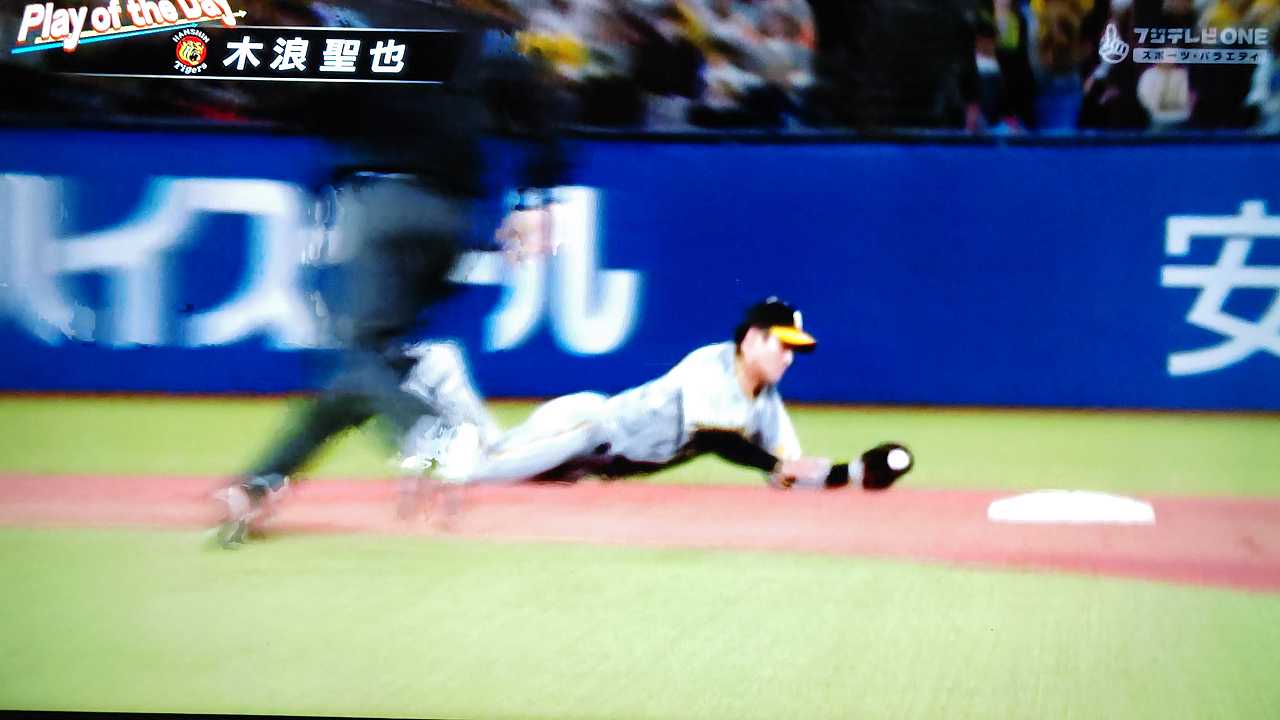 村上さまに特大のホームランは打たれましたが、まったく勢いは繋がらず、塩見の三塁線の抜いたかのあたりを、サトテルが、超ファイルプレー!!