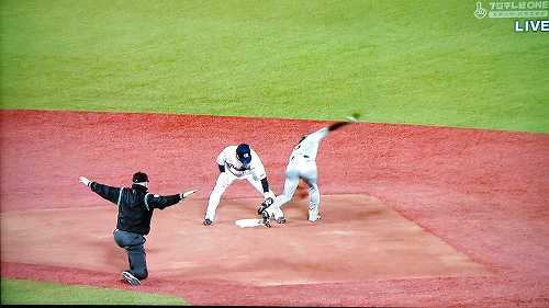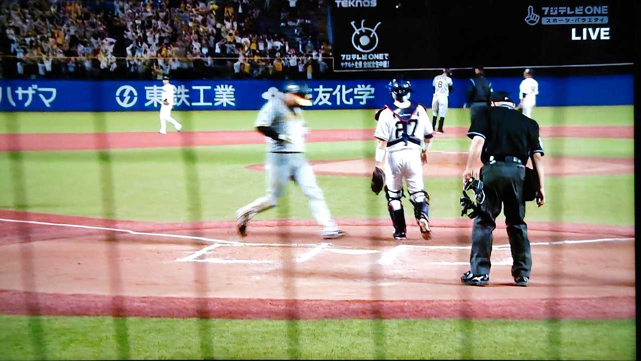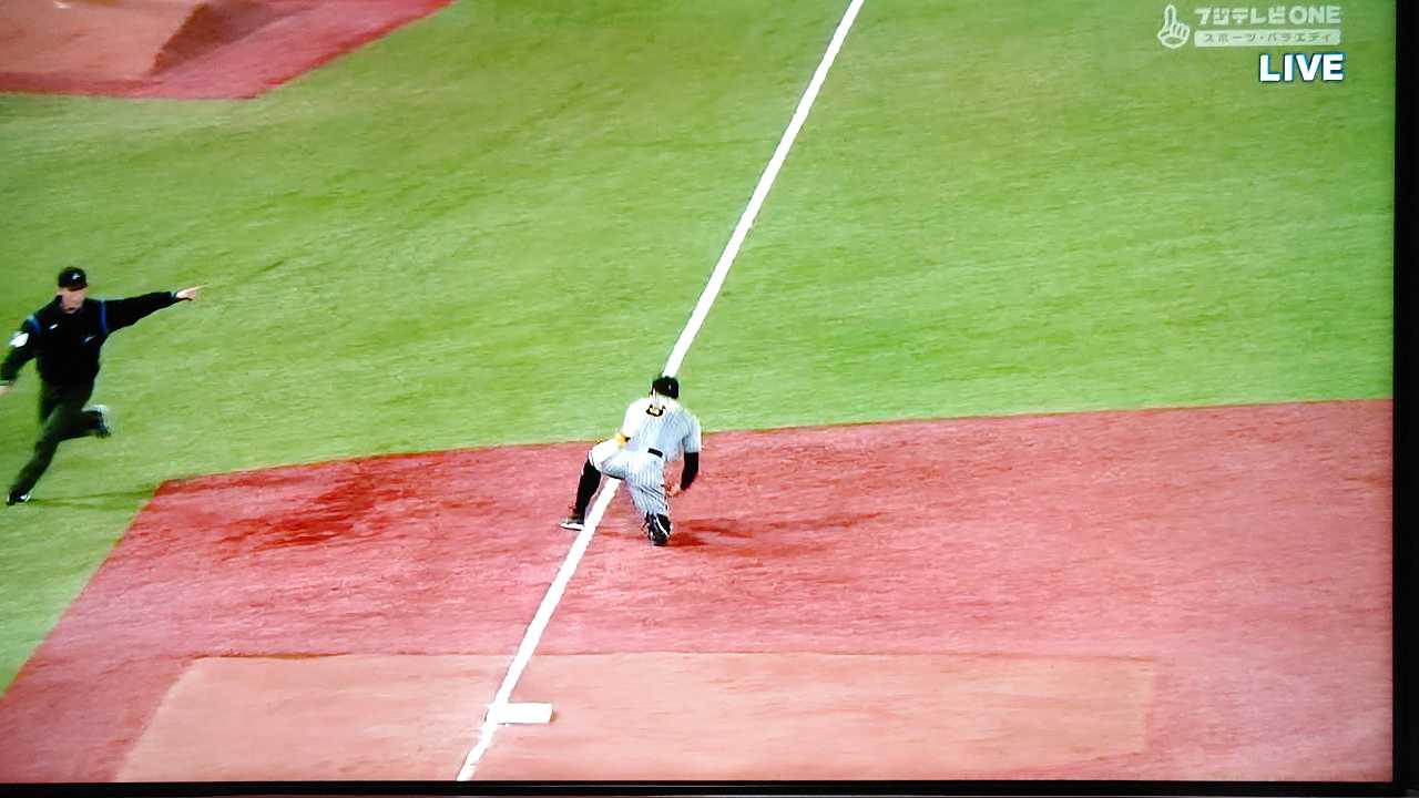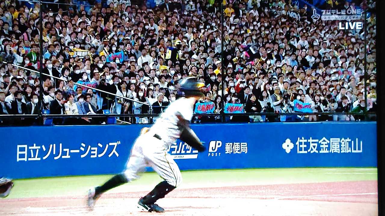 延長二死から、近本ヒット!!そして、盗塁成功!!