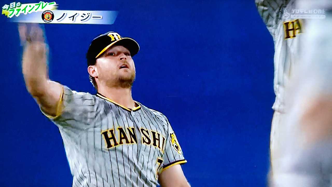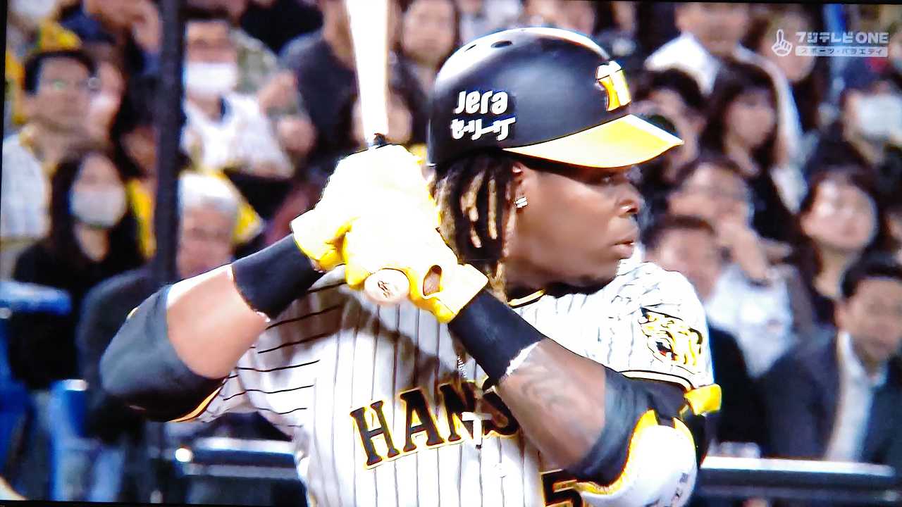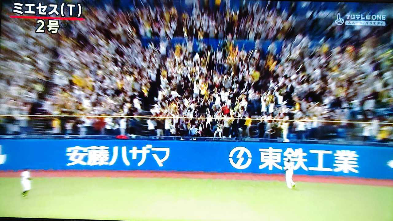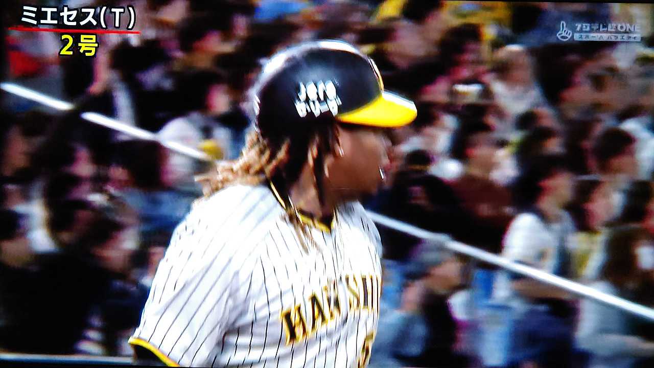ビッグプレーはまだまだ続く。6回1死1、2塁のピンチではショートの木浪がセンター前に抜けそうな打球に飛びつきそのまま2塁ベースへトス。ファインプレーで失点を防いだ。するとその直後、7回にミエセスがスタメン起用に応えた。高めの球に対し鋭いスイングが一閃。来日2号は左中間への豪快な同点アーチとなった。