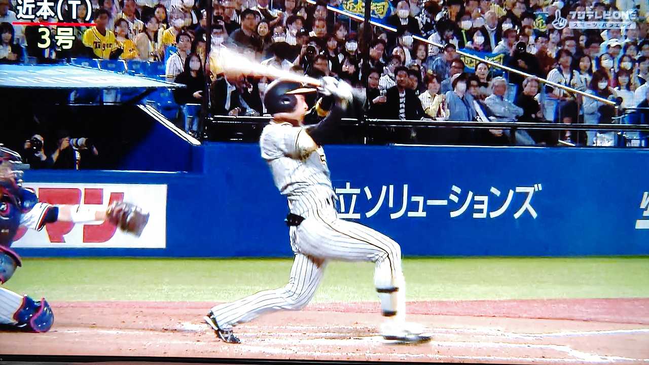 2-2と試合を振り出しに戻すと8回には先頭の近本がライトスタンドへ勝ち越しアーチを描いた。