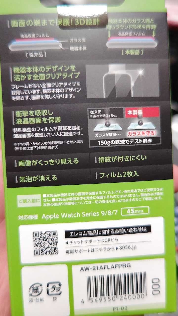 エレコム Apple Watch (アップルウォッチ) フィルム 2枚入り 45mm [Apple Watch 8 7 対応] 耐衝撃 衝撃吸収 フルカバー 光沢 指紋防止 クリア AW-21AFLAFPRG
