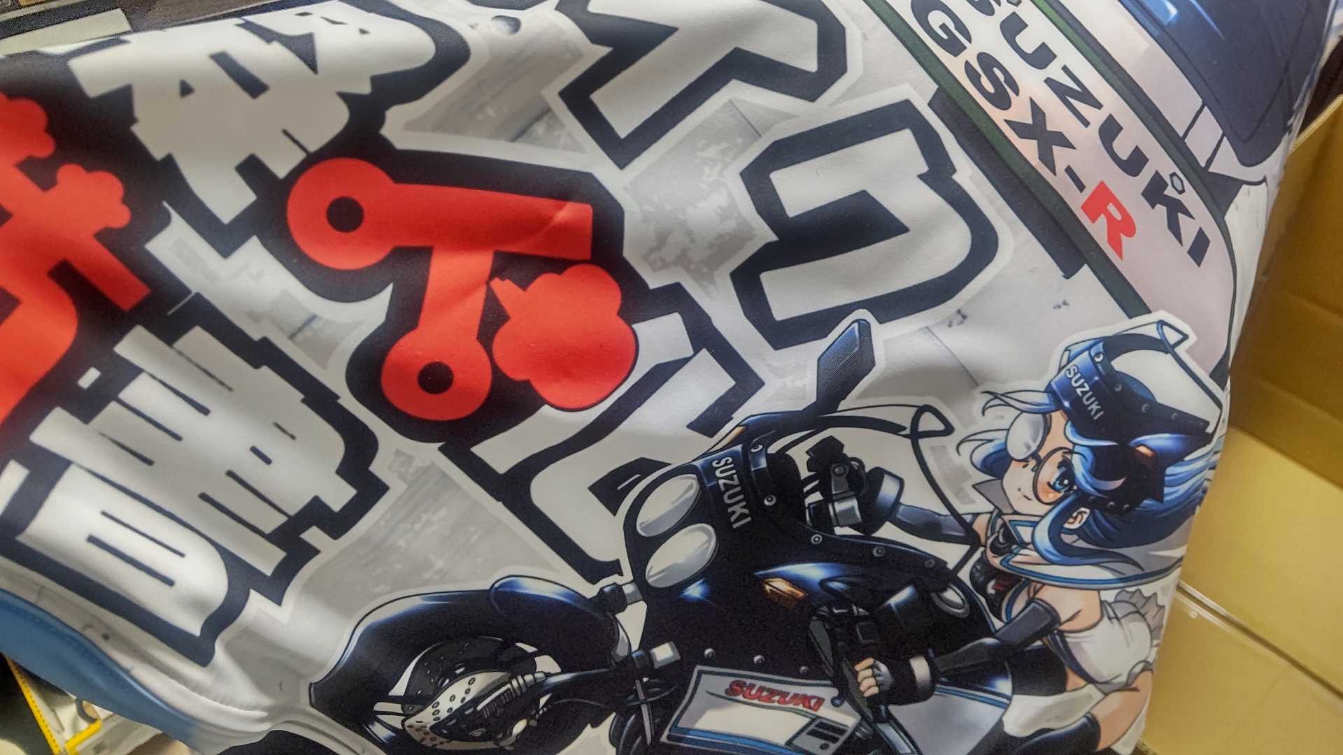初代GSX-R GK71Bのアクリルキーホルダー、タペストリー、抱き枕届きました! #バイク擬人化菌書 #GSXR #GK71B