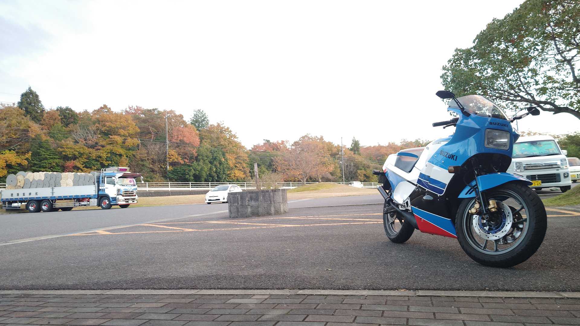 2か月半ぶりにエンジンかけて、ガソリン、オイル入れて、道の駅あやま に #RG250Γ #GJ21B