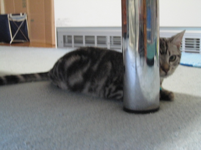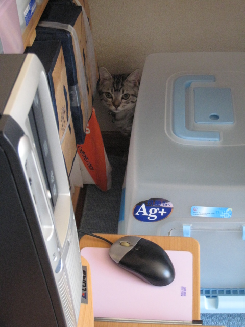普段は大人しいと何処か具合が悪いんじゃないかと心配だし走り回ってると怪我をするんじゃないかと心配。。。今は手術後なので特に心配なんですが相変わらずのセナ・ペースで昨日は一日中寝ていたのに今日は走り回るし、イタズラをするし・・・今セナの一番の興味は壁にかけてあるコルクボードに刺さってる押しピンセナの部屋の上にあるので部屋の上にあがって手を伸ばして取っちゃいます何度もするのでボードはもうはずしましたが・・・ 怒られて慌てて降りてきて顔だけ半分隠れてます こちらの様子を伺ってます セナらしいと言えばセナらしいけどね~~~そしてトイレ掃除をしてる時は すかさず走って来て中に入ってます