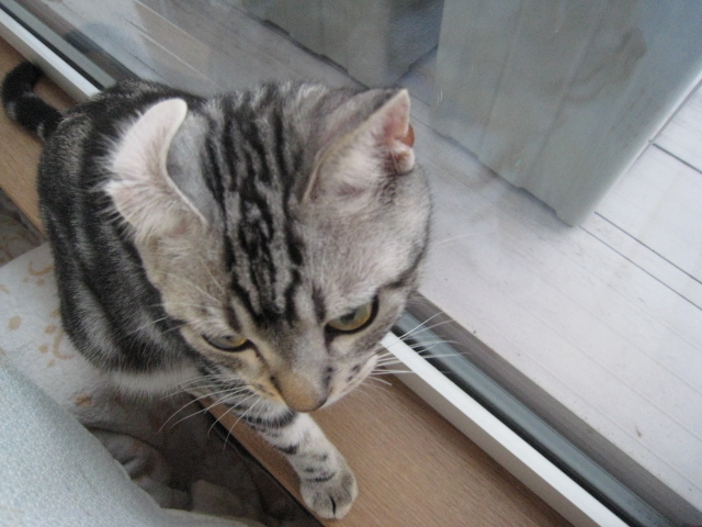 今日は朝からこんな感じでした・・・もちろん仕事はこんな顔でしましたけどね今日の主婦業も終わってヤケ酒も飲んで(相変わらず350mlを1本ですが…)さあセナと遊ぼうと思ったらね。。。いつもなら私のそばに来て寝そべったりしてるのに今日は全然、私の所に来ないセナが居る所は分かっているんです何処に居るかというとセナのテリトリーの一つのベランダです今日は何故かここから出てこない様子を見に行ってみると。。。これをご覧下さい 夢中です ここ数日、雨が続いてやっと晴れたせいなのか窓の外には虫さんがいっぱいセナは虫さんに夢中で時々出てきてはお水を飲んでまたベランダへ全然、私と遊んでくれません寂しいよぉ~~~