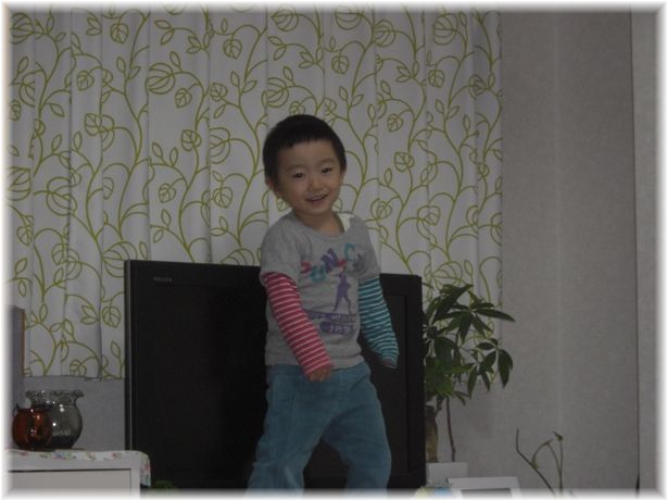 明日は運動会だから早く寝ましょうね・・・と思うのは大人だけ大はしゃぎの孫クンは歌ったり踊ったり~♪「おばあちゃんと一緒に○○○..」と嬉しい要求に一緒にお風呂に入り、そして隣に敷いた布団に入って寝たのはもうすでに11時を回っていました翌朝素晴らしい秋空のもと9時スタートで運動会は始まりました この保育園は1歳児から5歳児までの5クラスあり大体各クラス20名ほどの園児がいるようです12月に予定日よりも1ヶ月以上早く1434gの未熟児で生まれた孫クンは3歳児クラスでも1番小さく見えましたが並ぶ時は先頭か一番端っこそのお陰で苦労して探す事無く演技を観る事が出来ました身体は小さくともダンスもかけっこも他の子供さんに負けないほど元気いっぱいの孫クンでした朝6時、炊飯器とパン焼き器のお知らせメロディーが鳴りそれからママSちゃんの大奮闘が始まりそのお陰でお昼に美味しいお弁当をみんなで囲んだのです福島では大抵小学校の運動会は午前中で終わるのですがこちらの保育園は午後までと知りちょっとびっくりでした(もっとも1歳児クラスだけは午前中で帰ったようですけど) 未就学児童といっても最後にちゃんと紅白に分かれてのリレーもありしかもアンカーは1周かなり盛り上がりました3~5歳児までの園児による「ソーランよさこい」も素晴らしく特に黒い衣装をまとった5歳児達の踊りはとっても格好良かったですよ福島に戻ってきてから暫く私の頭の中から離れない曲があってそれはこの日入退場するたびに流れていた曲なのですあとでSちゃんに教えてもらったらスマップの「Moment」という曲だと知りました・・・つづく・・・