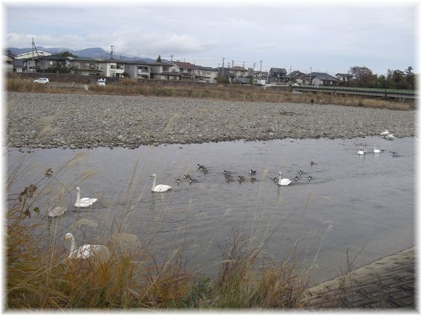 雪が降った翌日の日曜日はまたまたパンを手に松川へ行きましたらそれまでは姿が見えなかった鴨たちも来ていましたパンをあげていると、前日の雪を避けてこの日に移動をしていたのでしょうか私の頭上を飛んで行く白鳥たちを見たのです 白鳥たちは3つの群れに分かれていてまずは元気な?先鋒隊の白鳥たちが..次に一列に飛んで行く、次鋒隊最後のグループはお年寄りや子供の白鳥たちなのでしょうか(私が勝手に想像しただけですけど)とにかくごちゃごちゃした数多い群れが前の2つの群れ同様、北から南の方へ向かって飛んで行ったのです白鳥ではなく、ムクドリに見えるかも知れませんのでアップした写真も載せておきますね方角が阿武隈川とは少し違うのでもしかしたら猪苗代湖方面にでも向かったかも知れません 実は松川から川寒橋をわたり先の新しい道路を飯坂街道に向かって行った所に可愛いパン屋さんがあるのです朝の7時開店と福島では珍しく早くから開いているので今朝はポケットに千円札を1枚入れて家を出ました 店内に入りますと、棚には出来たてのパンが並びどれもこれも美味しそうで選ぶのに迷ってしまいました 嬉しかったのは大好きなガーリックフレンチがここでも売られていた事でしたこれからこのコースを歩く時は時々ポケットに少しお金を入れて歩く事になりそうです
