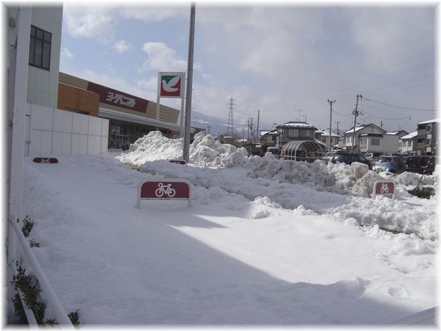 元気だけが唯一の取り柄だったわたしですが今回の雪には負けて、ついに風邪をひいてしまいましたでも、薬を飲んで大人しくしてましたので、もう大丈夫です(^o^)v土曜日の夜中、通りを除雪車によって車が通れる様にして貰ったのですが両サイドに積み上げられた雪によって、横道からバス通りに出られず日曜日は近所の人達総出で半日かけての雪かき作業が行われ家からもT男が出て作業してくれました下の写真は月曜日の朝の写真ですがT男の会社駐車場がどうなっているのか分からない為風邪気味ではありましたが、私が送って行ったのです前日皆さんが雪かきをして下さったにも関わらず何度もスリップしかけて、かなり慎重に運転して送ってきたのでした飯坂街道には、前日から動けなくなったと思える車が放置されてたしバスが運休していた為、朝7時というのに飯坂電車の駅には多くの電車を待つ人達の姿がありましたよく、雪の処理を巡って近所同士でトラブル発生なんて聞きますがその理由が私にも分かった気がします昨日、リサイクル収集日でゴミを出しに出ましたらいつも雪かきの雪を流している小川の所が雪の山になっていたのです恐らく、ここを雪かきした人が川に捨てないでそこに積んでいったのだと思いますがこれでは、次に雪が降った時に捨てられなくなってしまいます 風邪が治りきっていませんでしたが、我慢出来ずすでに凍ってしまったその山を草削りで少しずつ割りながら、川に落としていましたら通りかかった知らない人が車を停めて、「そんなんじゃ駄目だよ」と車からスコップを出して凍った雪の山を割ってくれたのでしたそれまでは、そこに雪を捨てた人を恨みながら雪を割っていた私でしたがそういう自分がとても恥ずかしく思えましたお礼を云うまもなく、その方はすぐに立ち去ってしまいましたが本当に助かりましたし、おおいに勉強になった事でもありました