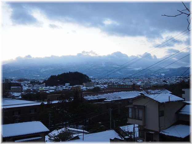 昨日は朝から雪が強くウォーキングは無理と諦めていたのですがお昼頃から晴れだし、3時過ぎには道路の雪も溶けていたのでいつもより遅めのウォーキングへと出かけたのです家を出た時は西の空がうっすらと茜色だったのですがいつもの吾妻連峰を眺める場所まで来た時には残念ながら日はすでに山の陰に消え、家々の明かりが灯り始めていましたこの時間に山道を歩くのは勿論初めてでしたが上から眺めた暮れなずむ町の景色はなかなか美しくちょうどトンネルの上の辺りでは、国道13号線を走る車のテールライトが赤く輝いて見えましたちょうどFTVテレビ局が見えた所で引き返したのですがテレビ局の横の道をまっすぐ行けば、冬の夜をイルミネーションで彩られた福島の繁華街パセオ通りへと続いている筈です20分も経ってはいないのに、最初に吾妻山を眺めた所まで来ましたら辺りは大分暗くなってしまいました山の中腹辺りにボウッと灯りが見えますがたぶんあそこは高湯温泉ではないかと..