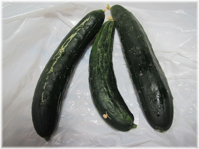 土曜日、クレマチスの咲く家の次に見つけたのは大きな農家の家の門前に紅白の蓮の花が咲いている池でした本当は小学校の方へ歩いて行く積もりだったのですが大勢の子供達と父兄が歩いてくるのを見て途中から横へと曲がった道にあるお宅でした小学校の方から歩いてきた女性に尋ねましたら朝の内は雨でしたけど、小学校では予定通りに運動会が行われたと傘を手にしながら教えてくれました福島の小学校では、何故かお昼前に運動会が終わってしまうのです 浦安の孫クンが通っていた保育園では、お昼に家族でお弁当を食べて午後も沢山競技があったのだけど..。昨日の朝、夫に農協直売店へ行ってもらって野菜を買って来てもらいました携帯でお願いして購入してきてくれたお野菜ですが嬉しい事に、これら全部で1,000円でした
