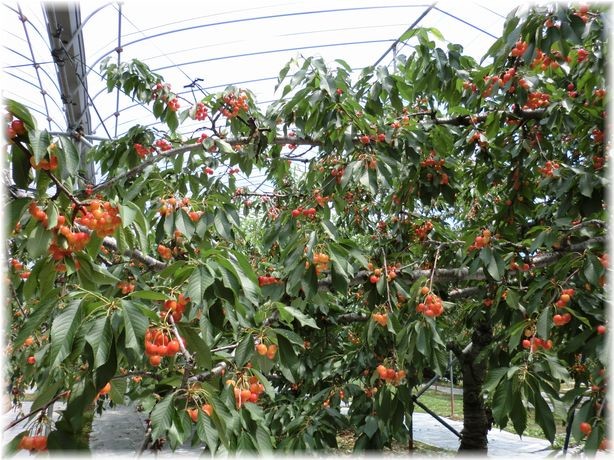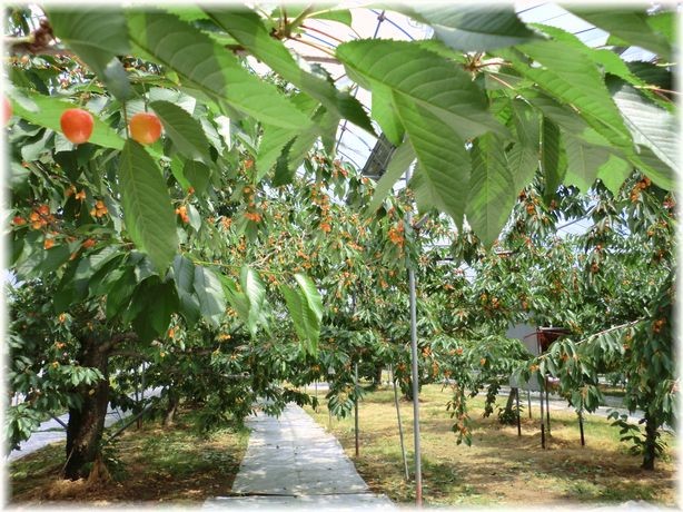 まだ少し早かったのか、サクランボは真っ赤ではなく