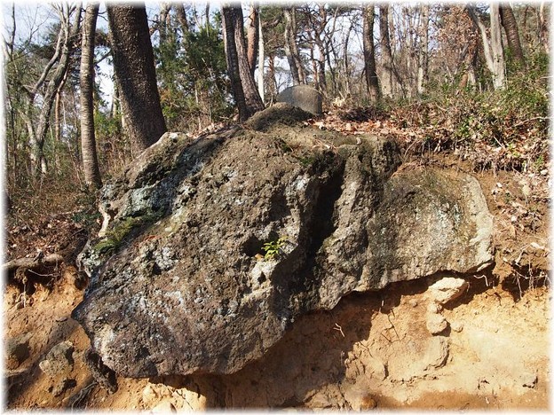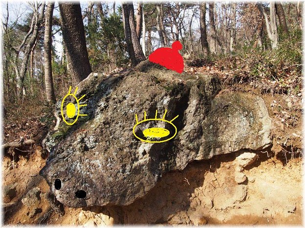 山道にある大きな石ですけど、私には恐竜の顔に見えたので