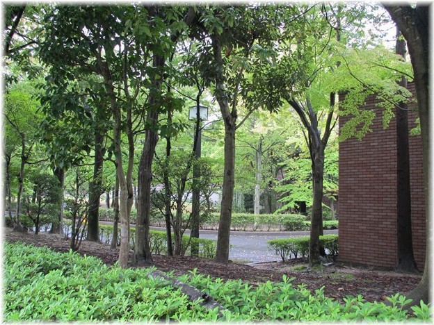 傘を差して家を出たついでに、県立美術館、図書館の周りを