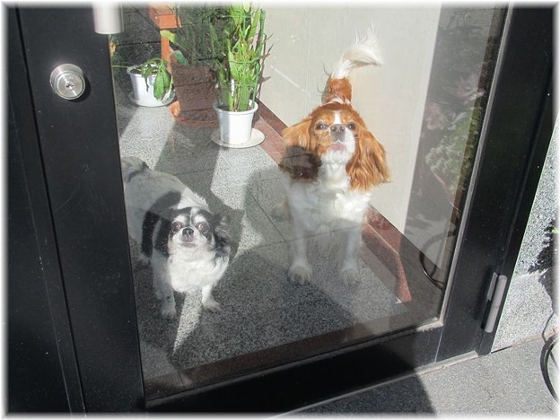 は散歩道にある事務所でして、前に 可愛いキャバリアちゃん達