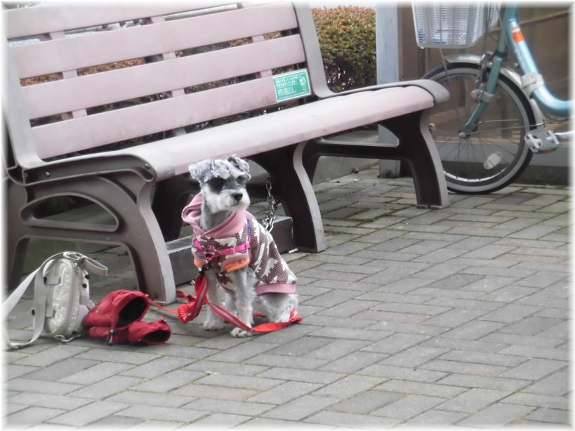 スーパの入口近くに飼い主さんを待っているのでしょう