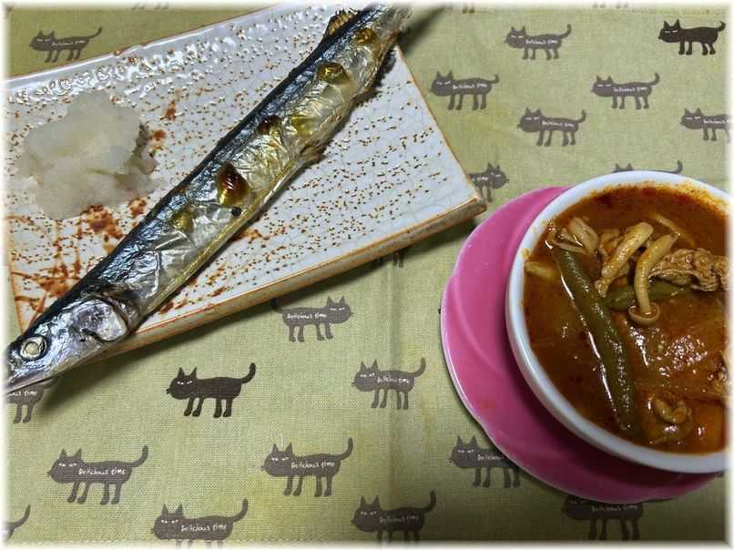 夕飯は秋刀魚の塩焼きと(セロリ入り)トマトスープとなりました