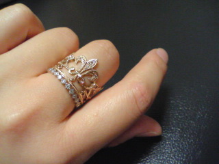 エメラルドリングにあうような渋いPTがないです。 とりあえずプチプチ(ロジウム暗め)&カンティーユの薔薇PT(SV)を着けてみた。 そしたら同僚に「かわいいですね!その…紐。」と言われる。 紐…?(´Д`) 反対に同僚が着けてた新しいブレスレットを「nojessのだね」と当てたら気持ち悪がられました(^o^) そういえば早速指輪をぶつけました…orz ギザギザにしてよかったわあ…。 そのあとなくしかけましたが(`ε´。) 隣の会社の人が見つけて持って来てくれました。うう。 という一日でした…(´Д`*) 全然関係ないんですが「相棒」がいきなし?流行っててびっくりです。 会社で話しても「あーお母さんがよく見てるよねー」的扱いだったのにいつの間に…(´Д`;) それではおやすみなさい。