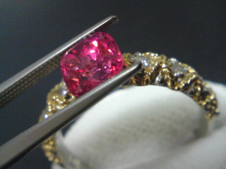ぎざぎざハート籠のパライバリングについて質問を受けたのでオーダー代についてちょっと細かく書きます。といってもカンティーユメモとほぼ同じ内容ですが。 NO.0638使用(手彫り全周) →アーム(ピラミッド彫り)のアップはこちら →ルースのレポはこちらNO.0638(5mm×7mm用)アフィリ先の下の方を見ていただければ各地金・彫りの場合のオーダー代が載っています。ファセットとカボッションの違いはありますが同じNO.0638の枠を使っています。なお「縁のみ手彫り」というのは縁にミル打ちをするだけ(ピラミッド彫りではない)ので「手彫り半周」の値段を参考にしてください。ただ私のリングは彫りは半周ではなく全周に入っているので彫り代がもう少し高くなると思います。既成枠サイズにぴったりとはまるルースが見つかれば上記だけで済むのですが気に入ったルースが既成枠サイズでない場合は石座の調整が必要です。ただこの石座はハートがゆがんでしまうため大きな調整ができないので調整出来るサイズではない場合は石にあわせて石座をオーダーすることになります。その場合はベースのリング代+石座代+加工費となります。なお「ベースのリング代」とはぎざぎざハート籠を乗っけている「細いリング代」で石座込みのNO.0638のリング代ではないです。(値段改定後にオーダーしていないので詳しい値段はわかりません)というわけで既成枠にちょうど使える石が見つかった場合はいいのですがサイズがあわない石の場合は結構かかってしまいますね。私が購入したパライバは本当に買う気がなく「うっかりしかも随分高値」で落札したものですが既成枠が使えるサイズだったのでオーダーするのは楽でした。以上 ご参考までに(・∀・)☆石持込オーダーは銀座店しか受け付けていないのでご注意下さい☆