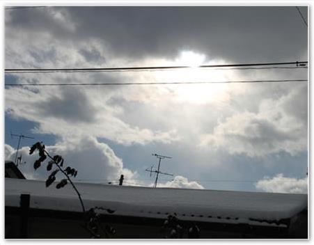 9自30分、三人が朝錬へと見送る自分。外は真っ白の雪でした。外は誰も歩いた足跡もなく新聞配達の方は3時頃のその足跡も無くその後に降った雪でしょうかしら・・・。やはり雪を見ると寒さも一入です。明日は弘前遠征・・・頑張る息子たちです。好きこそ何とかと言いますが、自分は家の中でPCに向かい載せてしまう。孫が読んでと置いて行った本に目をやらなければ、どうした弾みかその本のしおりが、交流館の奥さんから戴いたシオリです。黒地にピンクの桜・何時上げたかしら・・・。 孫、私に読ませるなんて帰るたびに自分の小遣いから一冊くれる。その度に読んだかと聞かれてしまうが文中の名前なんかはもう忘れてしまうがあれこれと言われるとつい思い出して話が弾む又これがボケ防止かな???・外は風が音を立てて吹き荒れるそれでも日が照るのでカメラを向けると雲の中 風が強く雲の流れが早いのについて行けないタイミング・・・。
