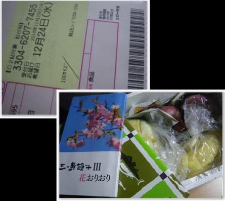 孫兵庫県若鷲全国大会へと7時30分家を出る。 幾らか雪が降りましたが、この分だと飛行機も出発するでしょう。クリスマスイブもクリスマスも無い寂しい一週間になります。ただ怪我がなく元気な姿で試合に臨んでほしいと願う。約80校の全国からの選手・どうなる事かな行きたくともでられない大きな試合毎日が休みなく頑張ってきた証を・・・待っております。でも、九州勢の強いのは有名何処まで行けるかなバーさん心の中で【頑張れ~~~】自分はこれから迎えを受けて体操へ頑張ってきます。後は帰ってから又載せますよね。 今晩は、体操から帰るなり三通の不在票が入っております。妹から・義理の妹から・甥からの贈物でした。一人忍び泣き なぜか何にも言ってないのに・・・。埼玉の三頭白菜づけに、数の子他所沢の【われもこう】三ヶ島葭子資料だより・三ヶ島葭子三 花おりおり等が。義理の妹からは【ねんり家】のマウントバーム しっかり芽 3山初めて目にするケーキ中身は孫が帰ってからと家族が揃うしと・手向むけるが。本物は後で写すことに・・・。