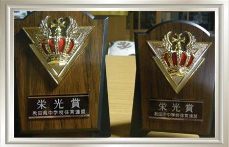 明日も大雪予報です。孫達は兵庫県でもう休む頃かななんて思ってしまうクリスマスは夕飯時にケーキでも付いたかな・・・。 その自分は何もなし。出かける時に渡して行った箱を思い出しておもむろに開けると何ともう・・・ 秋田県中学校体育連盟からと秋田市中学校体育連盟からの楯でした。【栄光賞】の楯二個でした。今年頑張った証でしょうね・・・。 昨日から稽古で一杯でしょう。27日のリーグ戦だけでもと祈ってしまう明日に持ち込めなくて載せてしまうバーさんです。