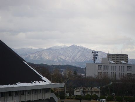 昨日のお天気は予報外れの雪の降らない外の道路は秋のよう・・・PC教室楽々でした。年賀状も出来上がり皆さんの作った年賀状を表にして来年には見てもらいましょう。これを加工しなければと思いながらまだ1時間が時間があるので、作っていったExcelのグラフを説明なくやってみてもらう。教室に入る前の大平山・又もブロ友さんが言ってくれるような墨絵のようでした。終わって帰る頃には雨になっていました。県立体育館にはまだ雪が残っています。もう大平山は見えなくなっていました。仲間が今年も最後と写してくれましたよ。帰りはいつものコースで・・・夕食は大きなおにぎりとサラダと唐揚げ・・・っ食欲旺盛全部平らげました。そのあと何時ものコースで温泉へ今日の温泉はヨモギ湯でした。露天風呂の温泉のテレビを見ながら、運動をして・・・帰りは雨も止んでいましたが外の気温が4度明日はどんなお天気かな。