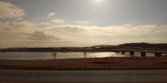 コートなしでも歩ける昼近くでした。あたりの景色を車の中から眺めながら出かけてきました。雄物川の水面を見て心が洗われました。最近どこへも行ってないものですからね。カメラでないとどうしてか・・・スマホで取ったんです。この川には毎年今頃ハクチョウなどの鳥が羽を休めてるんですが一羽もいなとはどうしたものでしょうね。今年の天候が暖かいから寒い地方へ行ったのかし・・・ 演武の帰り道には雪どころかまだ秋の枯葉だ散らばってるんです。こんなことってあったかしらね~~~。演武のもようは明日にでも・・・夕方から食事会に出かけましたので帰りが遅くもうほとほと疲れてしまいもう車の中で居眠りが出そうでした。何を食べたのか相手の方に失礼と写真は撮りませんでした。