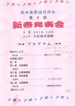 新春発表会 12時より始めました。 和気あいあいあと皆さん楽しんだようです。プログラムが終わりこれからは二次会となりました。模様はあとコラージュで加工をしまして載せたいと思います。何ともお着物で出かけてきましたよ。帯を結ぶのに一苦労なかなか手がゆうことを聞いてくれませんのでね。でも、なかなか着る事が無くなったので思い切って・・・紋がついていますがね。裏千家家元から戴いた紋なのでね【つぼつぼ紋】教授からですので京都まで行っていただいた許可状がいるんですからね。常には着られませんのでおけいこもやめたしと思い・・・・ひと汗をかいてきました。来客でサックス奏者の方が参加してくれました。館長さんの若い時からのお付き合いの方と言って素晴らしい音色に酔いしれてきました。それがね~~~生演奏で歌わせてくれたんですのよ。もう初めてのことなのにね。汗が体中流れてしまいましたよ。松尾和子の【再開】をね何とも気持ちがいいといいましょうかね、歌は下手ですが館長さんが入れてくれたんですのよ。それを奥さまが写してもうラインですぐ送ってくれるんですからね。便利な世の中ってこういうことでしょうね。