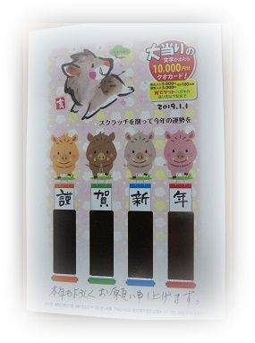 もう明日からは普通通りの生活に戻るでしょうね。 郵便配達の方々には本当にご苦労様でした。今日の年賀状には変わったようなのがね~~~なんともスクラッチ付きなんですよ。私の運勢を占ってくれてたようです。良いことばかりが出ていますよ。うれしいですね。でもこんなのもあるんですね。ところがね~~~カラオケ新春発表会があるんです。二週間後ですのでPCを開いて歌ってたらママはバータンむずかいのでは はてさて何としようかな・・・。