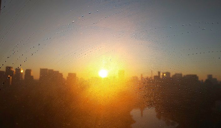 こうも違うお天気にビックリ日本の国は長~いブロ友さんの何時も16回からの朝日に驚いていましたが・・・自分も真のあたりに見てきましたよ 17階からの朝日に・・・こんなにも綺麗にみられるとは、有難くてね~~~。ただ、家に帰り画像を見ると窓の雫がね何回もふき取ったんですがね・・・でも半蔵門の皇居が目の前に隣は国立劇場・・・皇居のお濠を目の前にして・こんな時は後はないでしょうがね。写真も一杯撮りましたがね・・・。
