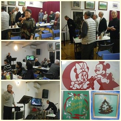 昼近くからは稲光や雷が落ちそうな音を立てて・・・もう夕方は止みました。夕べのカラオケの楽しみをね。カラオケの模様はいつも同じですが一番年長さんと一番うまい人がね奥様の切り絵がもうクリスマスです。皆さんが立って歌ってるのは、最初の声慣らしで【流転】・全員が一曲終るとまた立って【港シャンソン】最後が又【山のかなたに】にで終わり。自分が歌ったのはね・・・友達に送られてる車の中での相談。何とも面白い事でしょう。毎朝テレビで今日の運勢を放映してるそうです。彼女もさそり座・この私もさそり座なんです。その運勢がなんとかかんとかと忘れましたが【将棋の駒】が運が強いとか 早速乗りましたよ。うんそうかっと言って歌いました曲が二曲。一曲は何とも【王将】村田英雄のね二曲目は【たてがみ】長山洋子のね良く歌いますよね・・・ホホホホホ・・・。帰る頃仲間の一人が最近沖縄の歌を歌わないねとくるからね~~~。今月はもう一回あります。