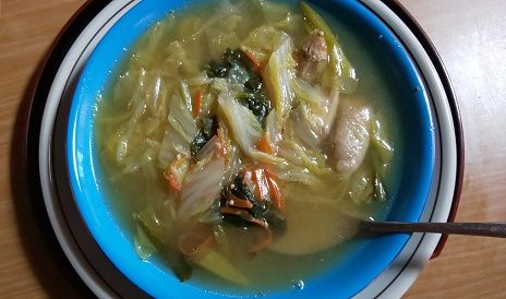 今朝から憂鬱なお天気・・・お昼は白菜たっぷりにショウガもたっぷり入れてのスープを作りました。白菜はとろけるほどに・・・ママたちはお餅を焼いてるので一口食べました。又も胃薬を飲んで・・・夕飯はスープにご飯を入れておじやにして食べましたよ。明日はお肉が食べたいですよ。