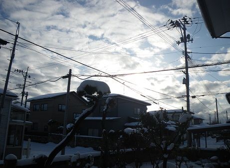 外は真っ白ですが、昼寝から目が覚めたのが3時外は日が射して明るいんですよ。お日様にあたってこようと外へ出てみました。3時のころのもう夕日かな・・・ 雨だれで雪が解けてきますが・・・雪ベラで雪を少し搔きました。気持がよかったよ。4時近くなりましたらまたも陽が強くなってきましたよ。夕飯は簡単にします。6時のニュースでは、昨日と今朝の雪で県南の雪祭りの一つ犬っこ祭りが出来たそうですよ。横手のかまくらどうなるかしらね。之からスケートを見て休みます。
