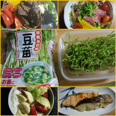 午前中はあまりにも陽が強くこの天気にあたって日光浴と散歩がてら一寸買い物をしました。昨日の豆苗また買いましたよ昼から介護体操へ行ってきました。午前中のあのお天気が1時過ぎの迎えの時には吹雪のような雪でした。厚手の防寒具に着替えて出かけます。又帰りは雪はやみましたが曇りのお天気に。なれないのかやはり疲れます。やったのは、マッサージチアー、フットワークチアー・階段・メドマー、マッサージだけですがね。器械はしませんのよ。一休みして掛け軸などと言いながらやりそびれました。6時半夕食にかかりました。豆苗を水菜の代わりに湯がいてカルパッチョふうに、湯がいてると青臭い香りが・・・でも食べるときには水菜より食べやすかったです。昨日の豆苗の根をタッパーーに入れてみましたよ。まあ今夜は早く休みます。