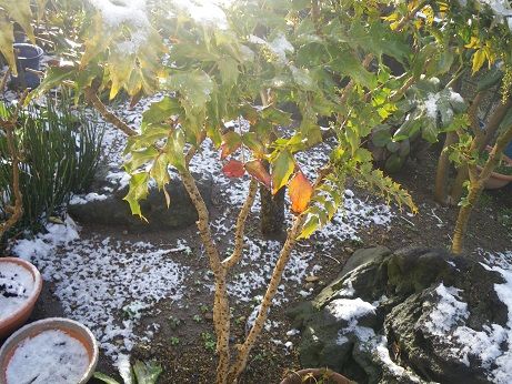 朝、カーテンを引くと真っ白な雪が降った後でしたよ。8時の今は日が射しています。きょうのあとはふらないでしょうがね。 今朝は何故か眠くて起きられないんですよ。夕べは8時に寝たつもりですがぐっすりでした。でも2時半目が覚めてね~~~今日は・・・なんて考えてる間にまた眠ったんですね。中々布団から出られないなんて老人老人と・・・今日はどんな日にと・・・
