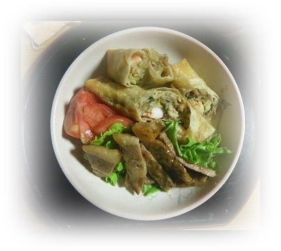 昼から介護機能維持に行ってきました。休んだ人が二人でしたので人数が多いと疲れます。1~4時までですからね。椅子に座ってるだけでも疲れるんですからね。機械類は全然しませんが・・・。帰って一休み・夕飯に矢張り春巻きを10本作りました。下拵えはできてたのでただ巻いて揚げるだけでしたので早く出来ました。夕飯の一品に昨晩作ってた鶏肉の胸肉が色よく出来ててサラダにママにね・・・もう自分はワインで食べましたよ。早く休みます。