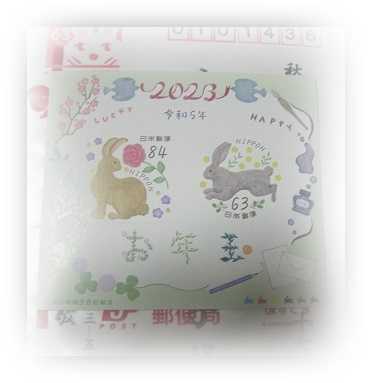 夕べの雪はほんのりと言うか気温はいくらか和らいでいます。遅起きの朝ですがね。少し外へ出て見ますがだれ一人歩いていません。空に向かっておはようと言う。お腹も減らないのよね~~~一通りのことを済ますがね。だって今日はなんて言う自分がね~~~。昨日ママが年賀の当選の切手を取り換えてきました。たった一枚でしたがと言ってね。今までと違った模様付きですよ。最近郵便物を出す事が無いので切手の値段も忘れていましたよ。改めて、84円・63円なんですね。本当の高齢者になったよう・・・。