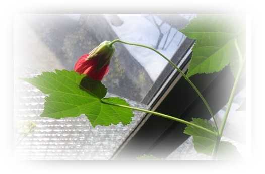 夕べの願いがかなったのかしらもう朝から陽が射して起き上がるにも寒さが感じないくらいです。カーテンを引くと昨日のアブチロン一輪赤く咲いていますよ。外から写してあげればよかったかもね。今日の大平山墨絵のようであるかな~~~。