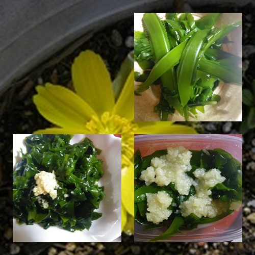 春の嵐の風か夕べからピュウピュウとうなっていますよ天気は良いのにね。夕べは教室から帰ると友達が男鹿の新若芽を届けてくれていました。早速処分して今朝ご馳走になりました。やっぱり美味しいのよね。若芽の茎は塩麹につけておきました。今晩食べれるでしょう。と言ってる所へ生協の友が昨日休んだのでと言って蜜柑を持って来てくれました朝茶に1人ではと思ってた所でしたので栗饅頭でお茶しました。このお菓子が好きなのでね・・・