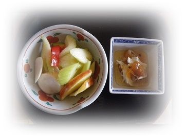 お昼は稲庭うどんを湯がいて夕べ作った酢の物二種と・