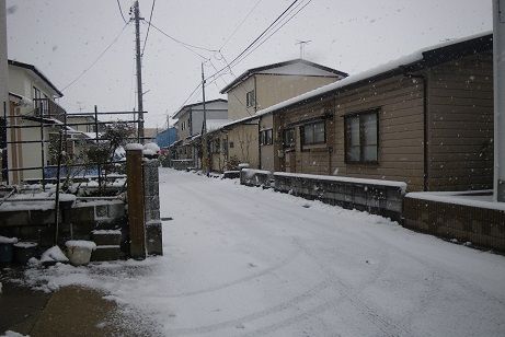 道路も朝10時、人の歩いた跡もなく今まだ深々と降っています。