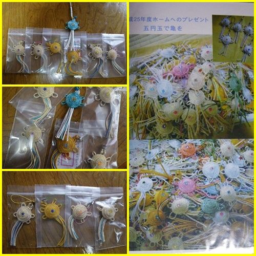 左の亀は25年度に130個作ってクリスマスにホームへ寄付をしたものです。
