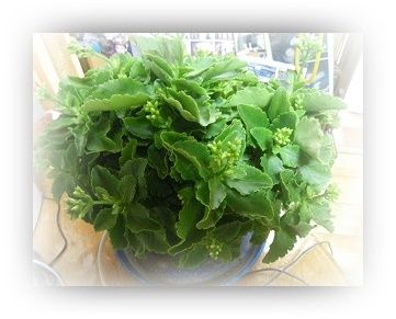 部屋の中のカランコエの花はなかなか咲いてくれませんのよ。