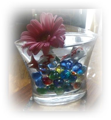 捨てるのが勿体無いと、飾りの金魚に挿しました。