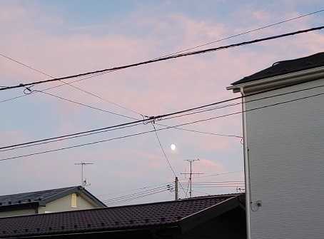 5時頃の夕焼けに月が・こんな景色は見ることないのにね