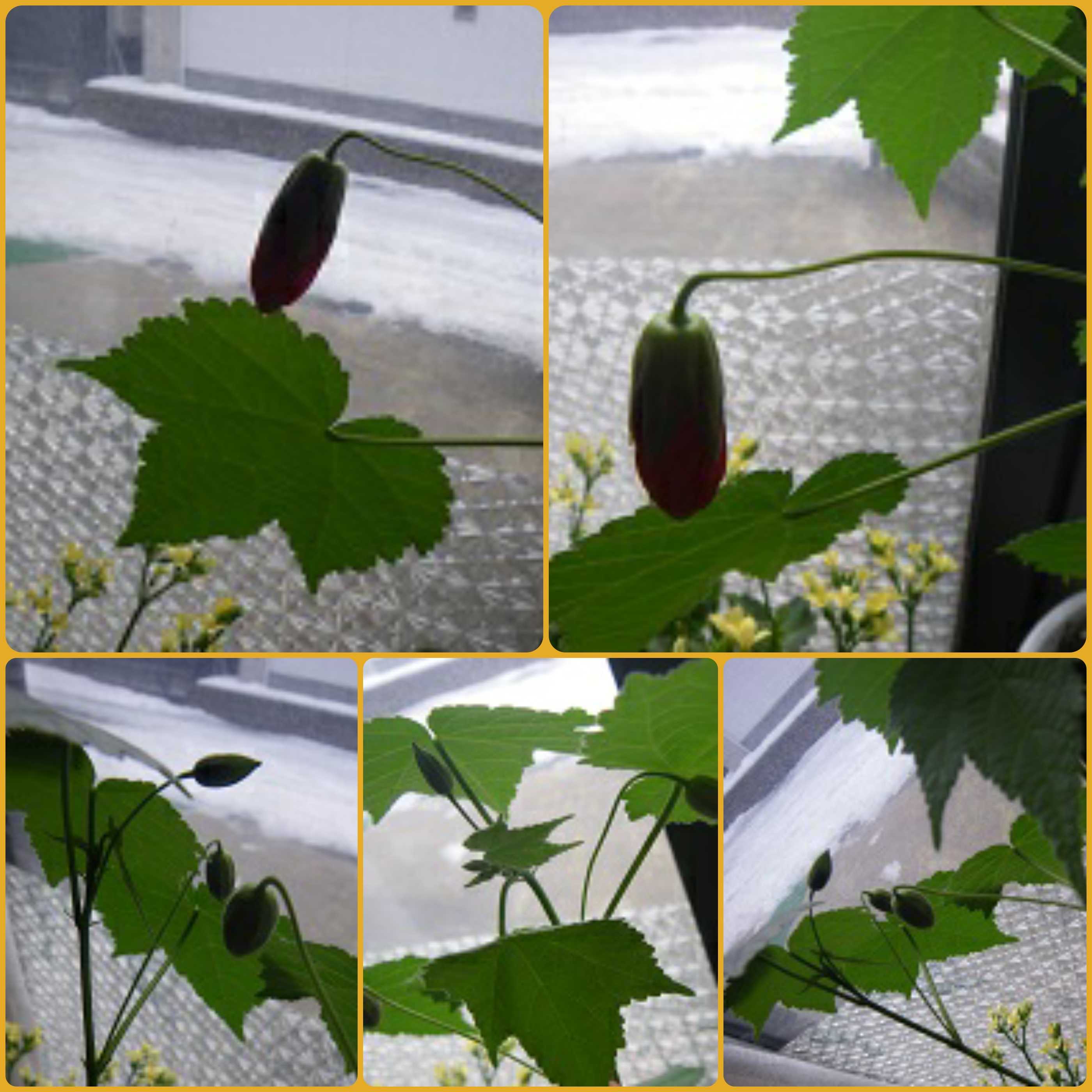 帰られた後に花を見ると何ともアブチロンの蕾が赤くなってるよ。
